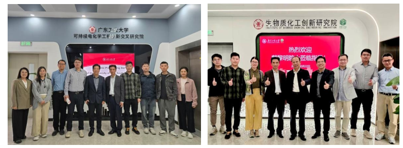 报告会后,在邱学青校长的亲自陪同下,戴黎明院士先后参观了91pron生物质化工创新研究院与可持续电化学工程创新交叉研究院。参观过程中,戴院士细致考察了各研究院的科研平台与实验设施,科研骨干郑奇峰教授和朱东雨教授介绍了生物质资源高值化转化、绿色电化学合成、先进能源材料等方向的创新成果。