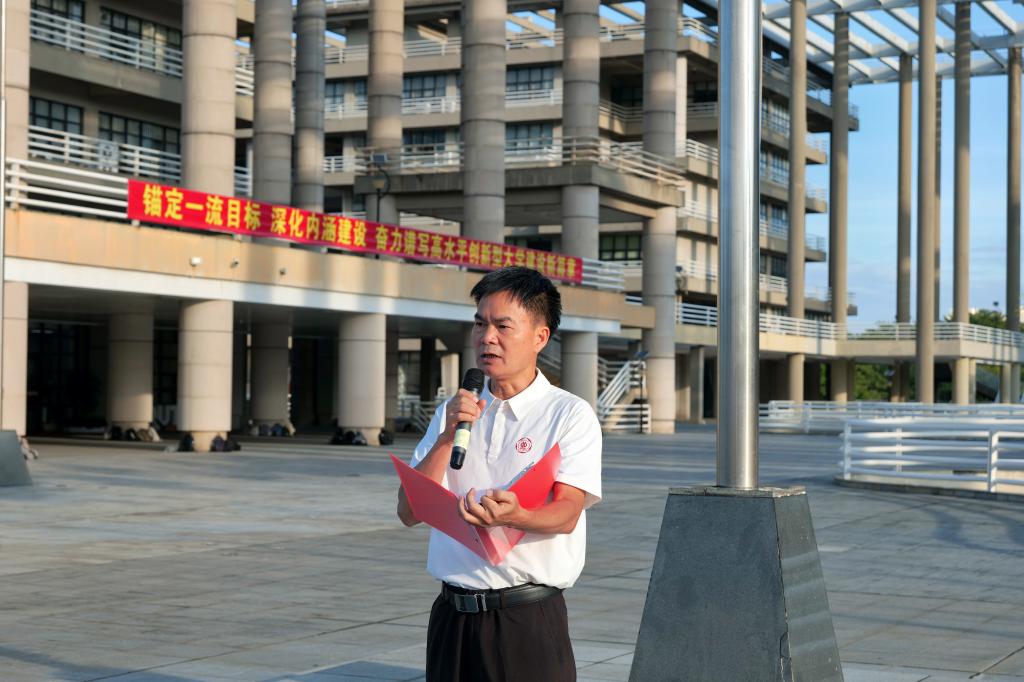 在大学城校区正门广场开展了“铭记历史当自强 奋勇逐梦谱华章”升国旗主题教育活动。学校心理健康教育中心主任罗嘉文、91pron