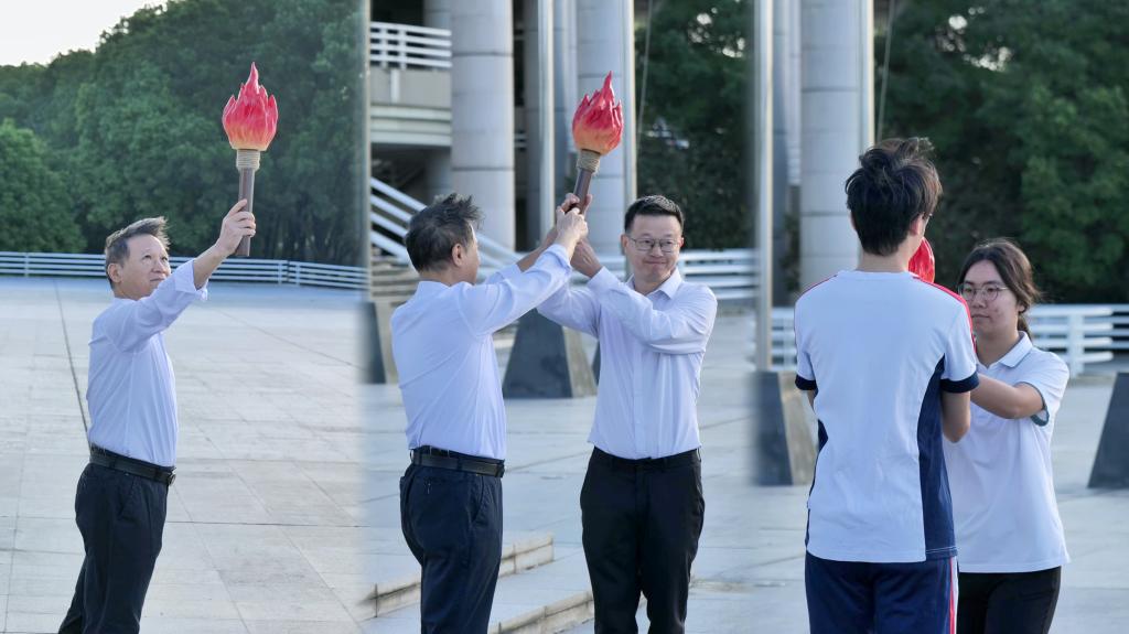 “2+3”辅导员黄雅琳传递,注入关怀与陪伴的温度;最终,郑重交到学生代表手中,由六位学生代表接续,点燃了六种截然不同却又相映生辉的青春火焰。