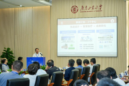 The main responsible persons from the Department of Scientific Research Management, Graduate School, Human Resources Department, and Analytical Testing Center, as well as the leadership team of the School of Light Industry and Chemical Engineering, heads of major teams in the school, and backbone teachers, attended the meeting.