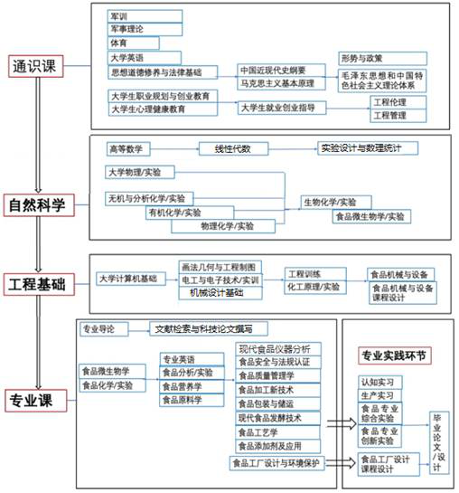 According to the evaluation and revision system of training programs for food science and engineering, the training program for undergraduates majoring in food science and engineering refers to the national professional standards, international engineering education professional certification standards and supplementary standards for food majors, based on the requirements of modern food industry for talents' knowledge and ability, combined with the talent training orientation and professional characteristics construction objectives of the UniversityDesign.The curriculum of food science and engineering includes general education, mathematics and natural science, engineering foundation, professional foundation, specialty and professional practice