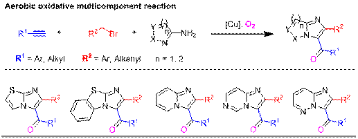 Recently, Associate Professor Li Xianwei and Professor Huo Yanping have made important progress in transition metal catalyzed organic synthesis.Through exploration, team members found that cheap metal divalent copper catalysts can realize the rapid construction of imidazo nitrogen-containing heterocyclic derivatives with terminal alkynes, benzyl or allyl halides, and 2-amino nitrogen-containing heterocycles under the condition of oxygen as oxidant. These compounds are the core framework of many drug molecules, including zolpidem, apitam, thalidomide and other anti-inflammatory drugs and central nervous system drugs.Recently, it has been found that these heterocyclic carbonyl compounds have good application value in the field of luminescent materials.In addition, the team members also made progress in the direct functionalization of hydrocarbon bonds in the early stage. It was found that amides and primary sulfonamides widely existing in the pharmaceutical field can realize regioselective Alkynylation under the catalysis of trivalent iridium.In addition, some drug molecules including celecoxib, probenecid and sulfasalazine (a kind of dysentery agent) were further modified. In view of the multi-function of alkynes, it is expected that these molecules will have potential application value in the development of new drugs.Related research results were published in: 2018, 16, 7143–7151 (front cover paper); org. Chem. Front., DOI: 10.1039/c8qo01105b. (front cover paper)Org. Biomol. Chem.